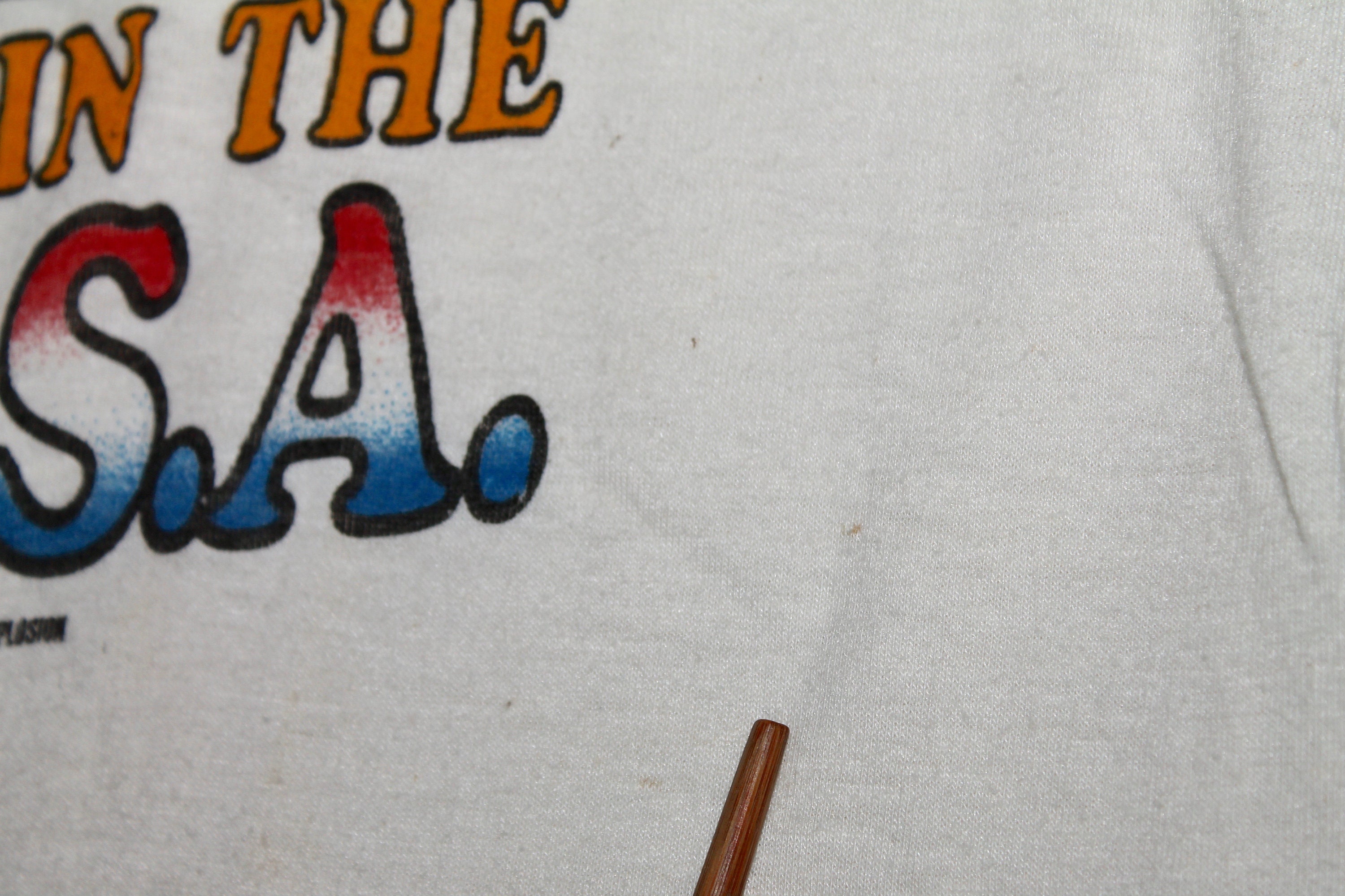 Condition: normal vintage wear / overall loss of brigness to whites / some minor scuffs / some marks on sleeves in armpit area that don't look like normal pit stains. May clean up some. (see last pics)